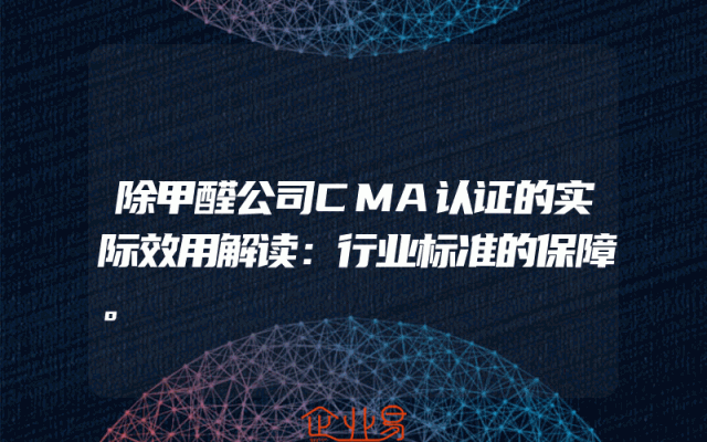 - 除甲醛公司CMA认证的实际效用解读:行业标准的保障。