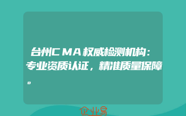 - 台州CMA权威检测机构:专业资质认证,精准质量保障。