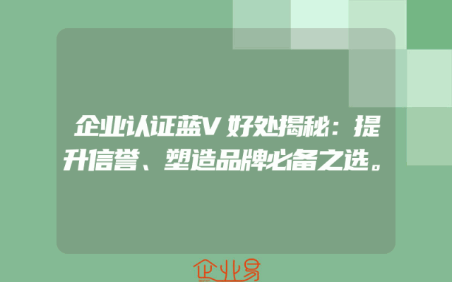 - 企业认证蓝V好处揭秘:提升信誉、塑造品牌必备之选。
