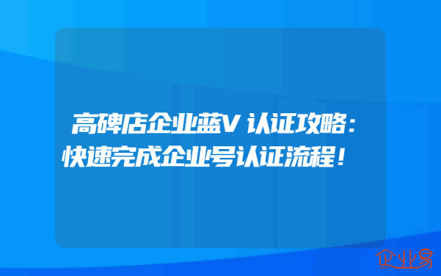 - 高碑店企业蓝V认证攻略:快速完成企业号认证流程!