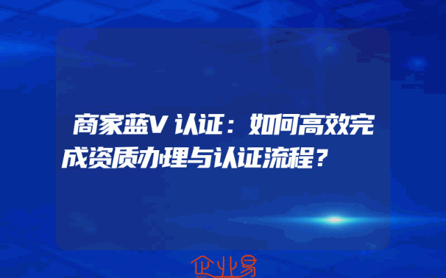 - 商家蓝V认证:如何高效完成资质办理与认证流程?