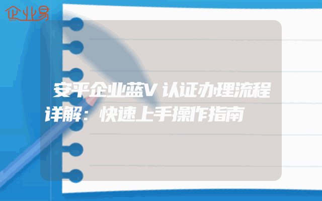 - 安平企业蓝V认证办理流程详解:快速上手操作指南