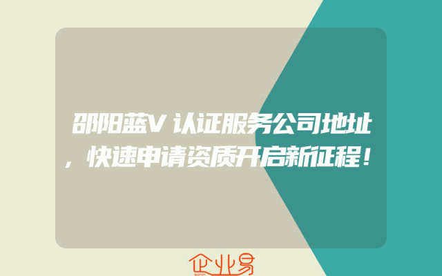 - 邵阳蓝V认证服务公司地址,快速申请资质开启新征程!