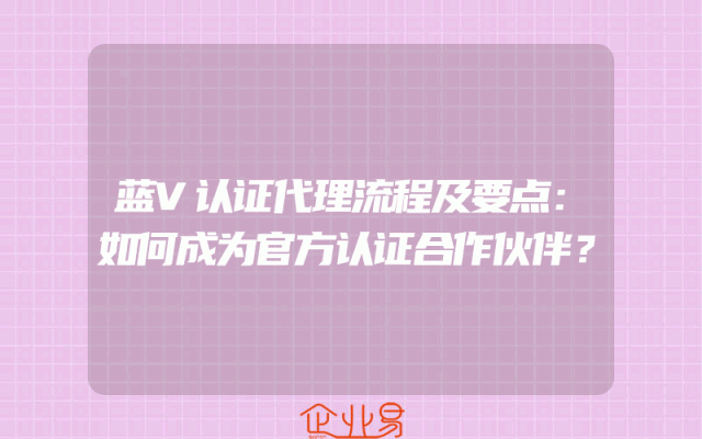 - 蓝V认证代理流程及要点:如何成为官方认证合作伙伴?