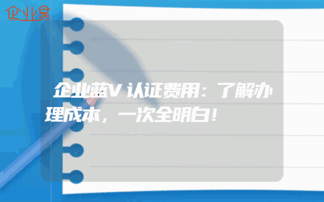 - 企业蓝V认证费用:了解办理成本,一次全明白!