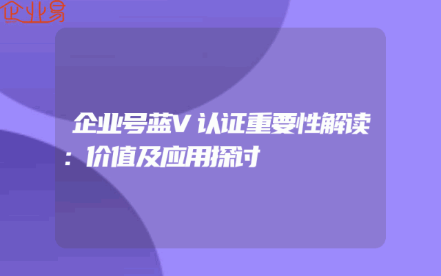 - 企业号蓝V认证重要性解读:价值及应用探讨