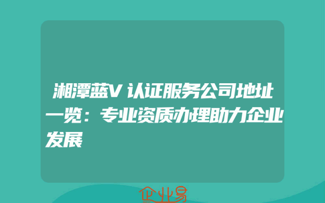 - 湘潭蓝V认证服务公司地址一览:专业资质办理助力企业发展