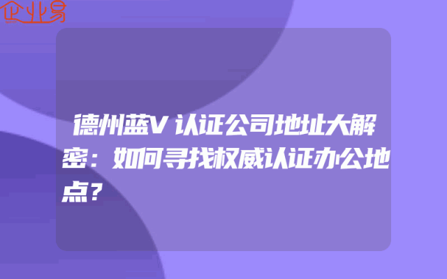- 德州蓝V认证公司地址大解密:如何寻找权威认证办公地点?