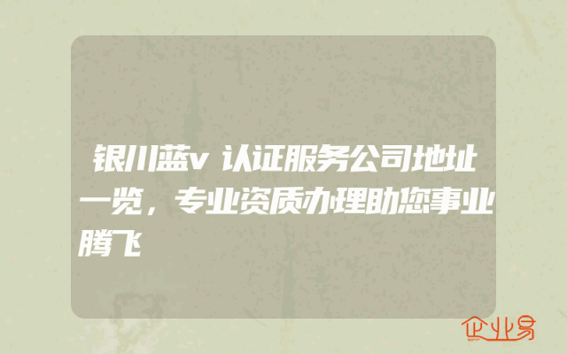 - 银川蓝v认证服务公司地址一览,专业资质办理助您事业腾飞