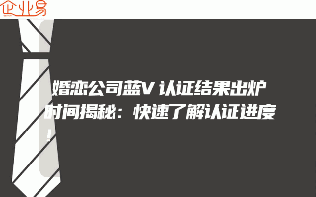 - 婚恋公司蓝V认证结果出炉时间揭秘:快速了解认证进度!