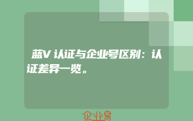 - 蓝V企业认证流程详解:资质办理步骤全攻略一、了解蓝V企业认证及其重要性在当今互联网时代,企业认证已成为众多企业追求的重要目标之一。蓝V企业认证作为其中的一种,不仅能够提升企业的信誉度,增强品牌影响力,还能为企业带来更多的商业机会。通过蓝V认