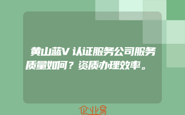 - 黄山蓝V认证服务公司服务质量如何?资质办理效率。