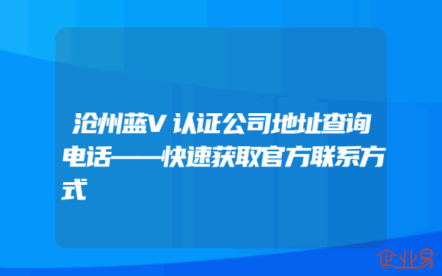 - 沧州蓝V认证公司地址查询电话——快速获取官方联系方式