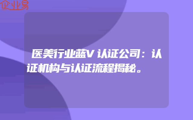 - 医美行业蓝V认证公司:认证机构与认证流程揭秘。