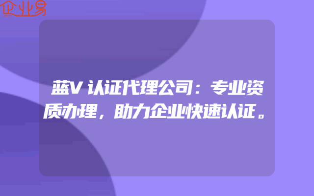 - 蓝V认证代理公司专业服务:高效资质办理助您事业发展一、引言在当今竞争激烈的市场环境下,企业资质的重要性愈发凸显。资质认证不仅关系到企业的合法运营,更直接影响到企业的信誉和业务拓展。作为专业的蓝V认证代理公司,我们深知企业对资质办理的需求和痛