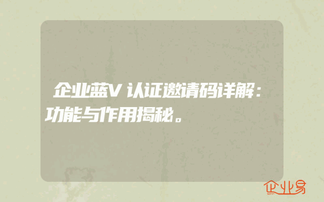 - 企业蓝V认证邀请码详解:功能与作用揭秘。