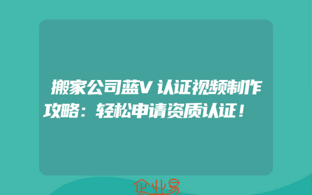 - 搬家公司蓝V认证视频制作攻略:轻松申请资质认证!