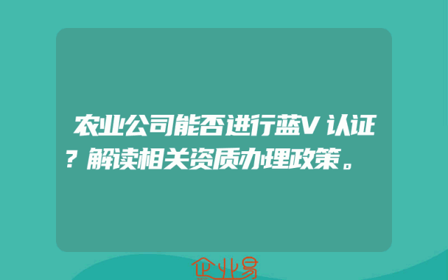 - 农业公司能否进行蓝V认证?解读相关资质办理政策。