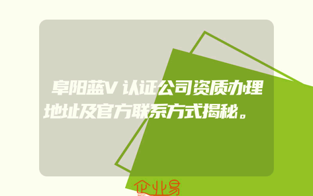 - 阜阳蓝V认证公司资质办理地址及官方联系方式揭秘。