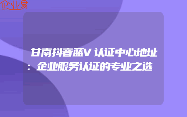 - 甘南抖音蓝V认证中心地址:企业服务认证的专业之选