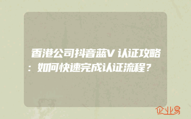 - 香港公司抖音蓝V认证攻略:如何快速完成认证流程?