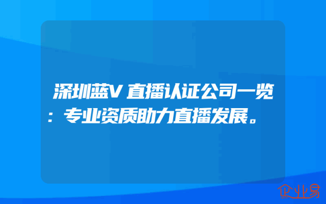 - 深圳蓝V直播认证公司一览:专业资质助力直播发展。