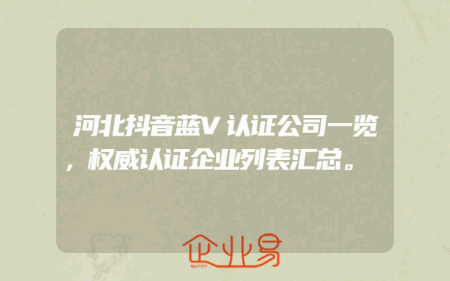 - 河北抖音蓝V认证公司一览,权威认证企业列表汇总。