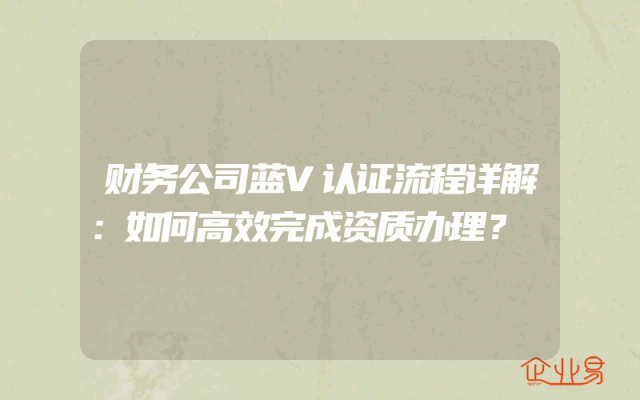 - 财务公司蓝V认证流程详解:如何高效完成资质办理?
