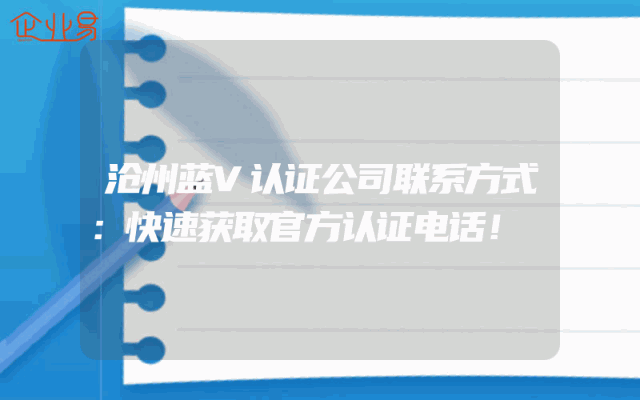 - 沧州蓝V认证公司联系方式:快速获取官方认证电话!