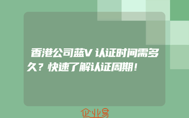 - 香港公司蓝V认证时间需多久?快速了解认证周期!