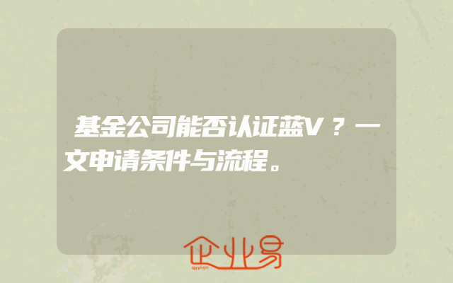 - 基金公司能否认证蓝V?一文申请条件与流程。