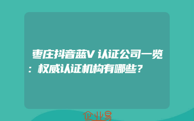 - 枣庄抖音蓝V认证公司一览:权威认证机构有哪些?