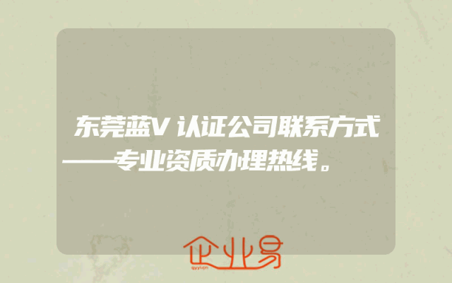 - 东莞蓝V认证公司联系方式——专业资质办理热线。
