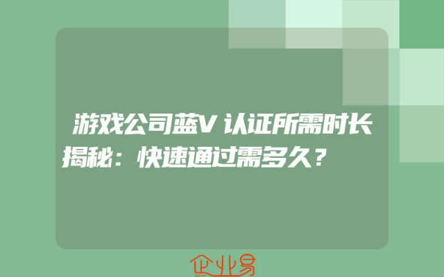 - 游戏公司蓝V认证所需时长揭秘:快速通过需多久?