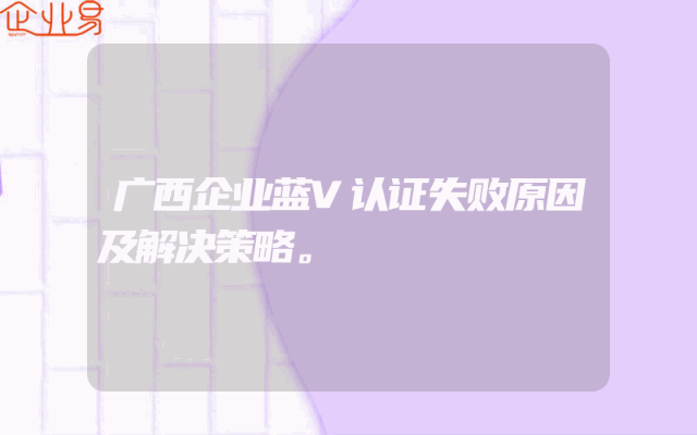 - 广西企业蓝V认证失败原因解析及解决策略一、认证失败原因分析在广西,许多企业申请蓝V认证时遭遇失败,原因多样且复杂。首先,资料不完整是常见的问题。企业提交的资料可能缺失关键信息,如营业执照未更新、授权书不规范等。其次,信息填写不准确也是一个重