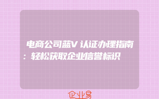 - 电商公司蓝V认证办理指南:轻松获取企业信誉标识