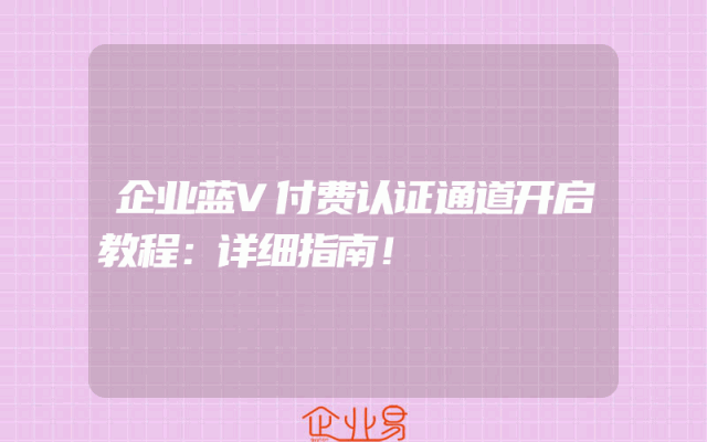- 企业蓝V付费认证通道开启教程:详细指南!