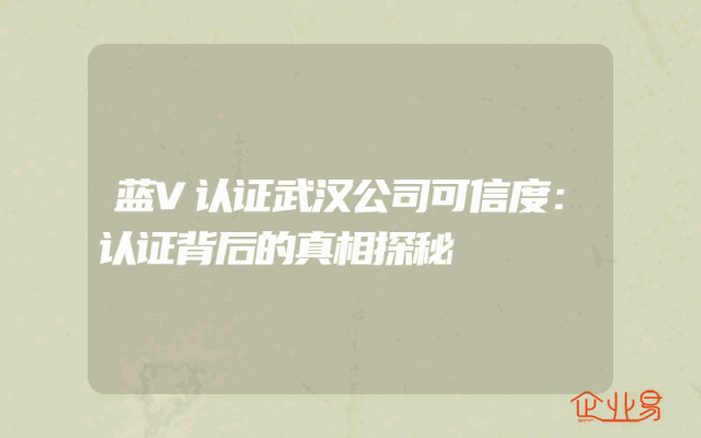 - 蓝V认证武汉公司可信度:认证背后的真相探秘