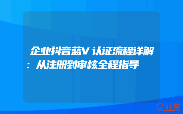 - 企业抖音蓝V认证流程详解:从注册到审核全程指导