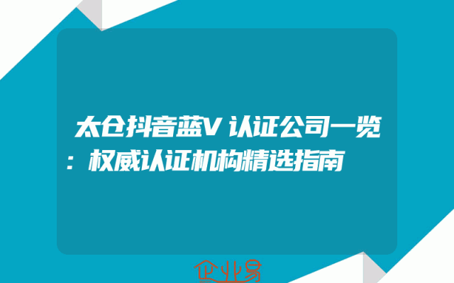 - 太仓抖音蓝V认证公司一览:权威认证机构精选指南