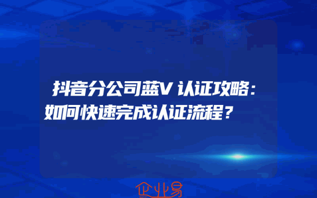 - 抖音分公司蓝V认证攻略:如何快速完成认证流程?