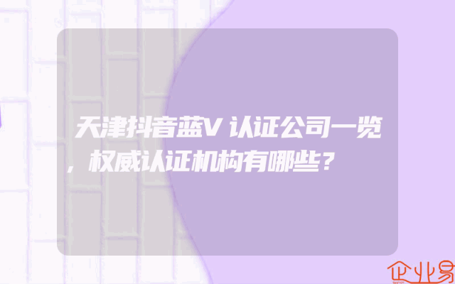 - 天津抖音蓝V认证公司一览,权威认证机构有哪些?