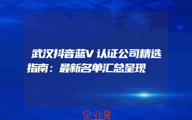 - 武汉抖音蓝V认证公司精选指南:最新名单汇总呈现