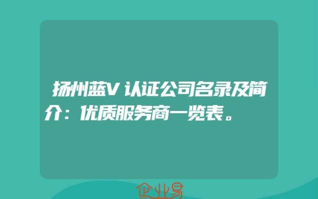 - 扬州蓝V认证公司名录及简介:优质服务商一览表。