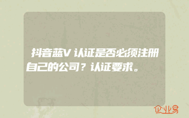 - 抖音蓝V认证是否必须注册自己的公司?认证要求。