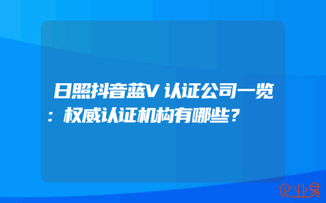 - 日照抖音蓝V认证公司一览:权威认证机构有哪些?