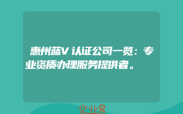 - 惠州蓝V认证公司一览:专业资质办理服务提供者。