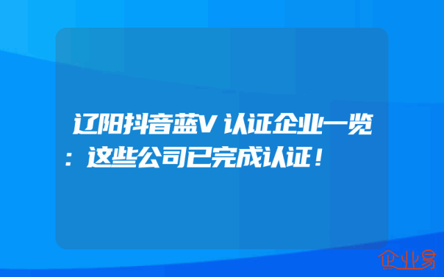 - 辽阳抖音蓝V认证企业一览:这些公司已完成认证!