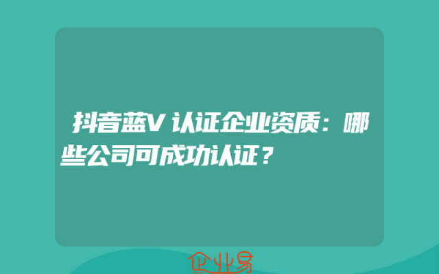 - 抖音蓝V认证企业资质:哪些公司可成功认证?