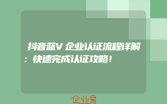 - 抖音蓝V企业认证流程详解:快速完成认证攻略!